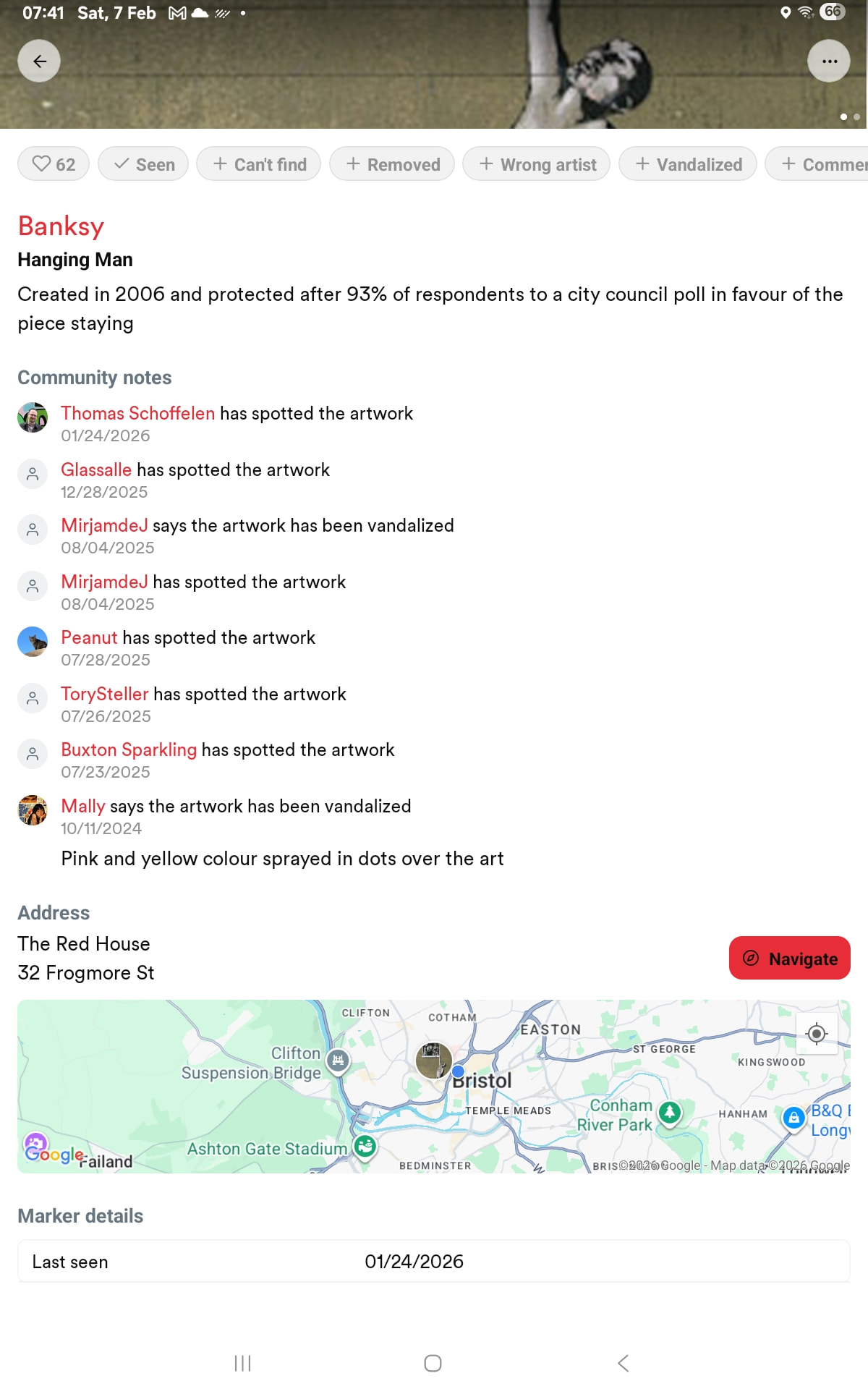 I’m in Bristol, and will shortly going out to look at some of the amazing murals in the city centre. I definitely want to see a Banksy or two, but how do you find where his works are just using the SAC, without having to use Google Maps? I know Hanging Man is near me… somewhere?