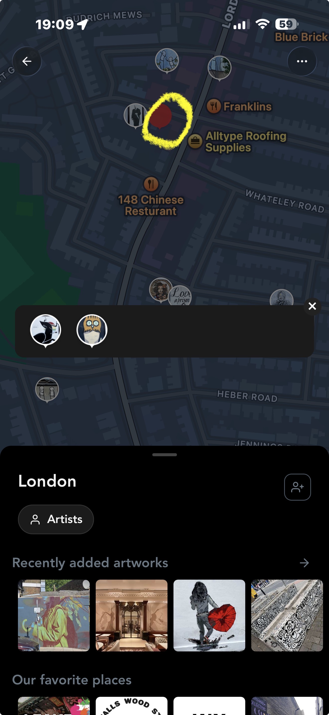 I get an issue in the app when I am trying to view 2 or more murals that appear when you click on the one red dot.