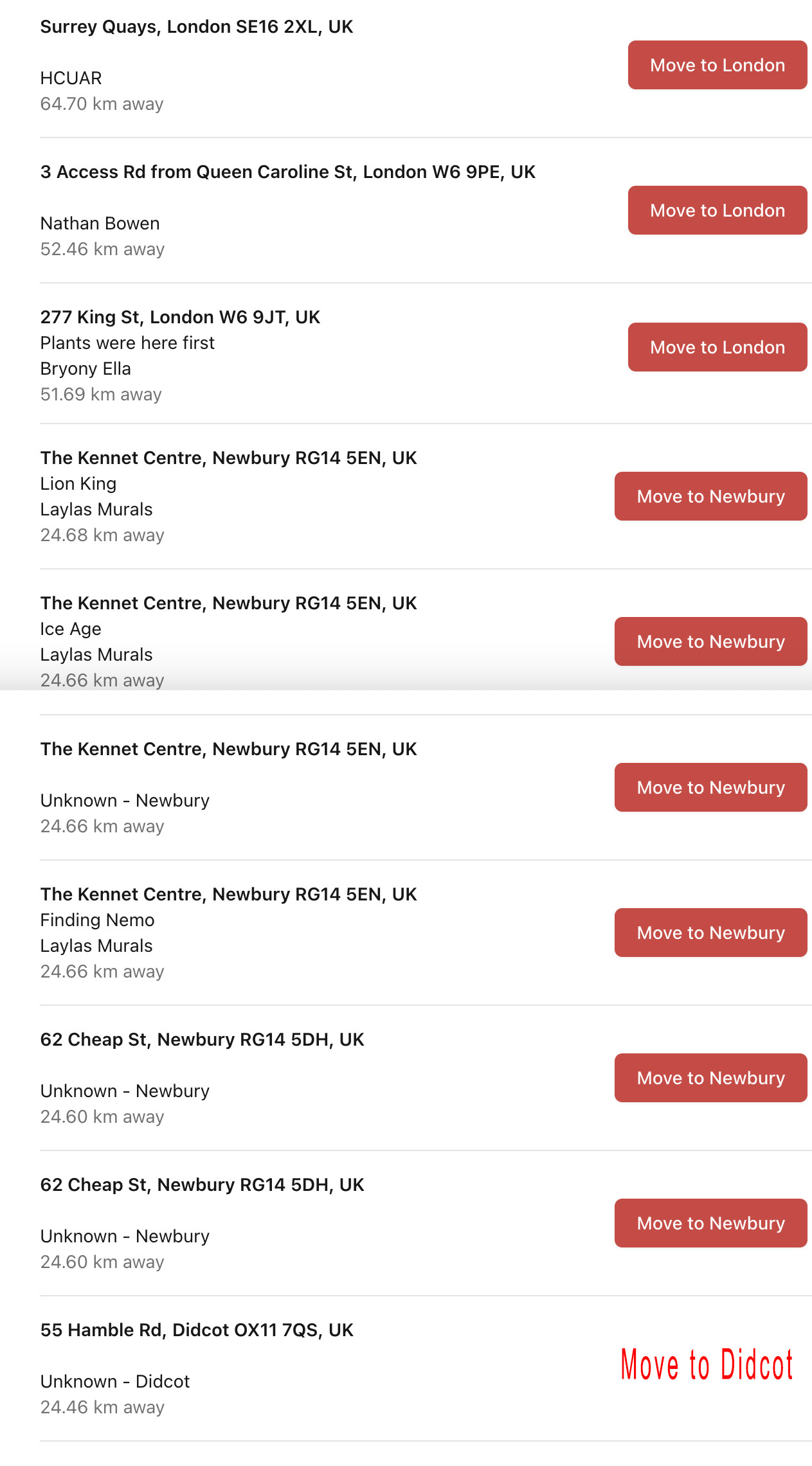 Hey guys, after being given the go-ahead by Thomas to jump in and help I have (I hope) completed all the moves you asked for. The two attached files “Moved from Coventry” and “Moved from Reading” show all the ones I moved.
