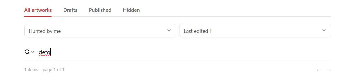 What if you use the filter ‘created by me’ and then look for the artist in the searchbar….