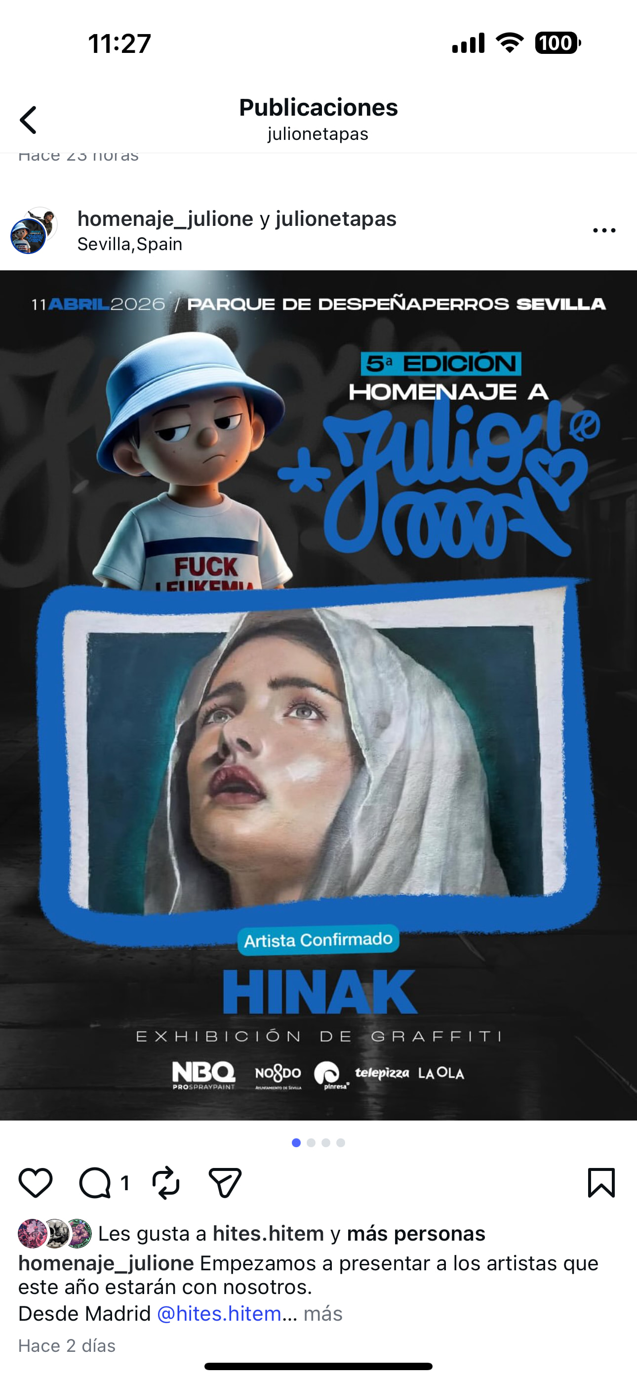 Instagram account: https://www.instagram.com/homenaje_julione?igsh=MTA4eDNjb3Jmam05cw==