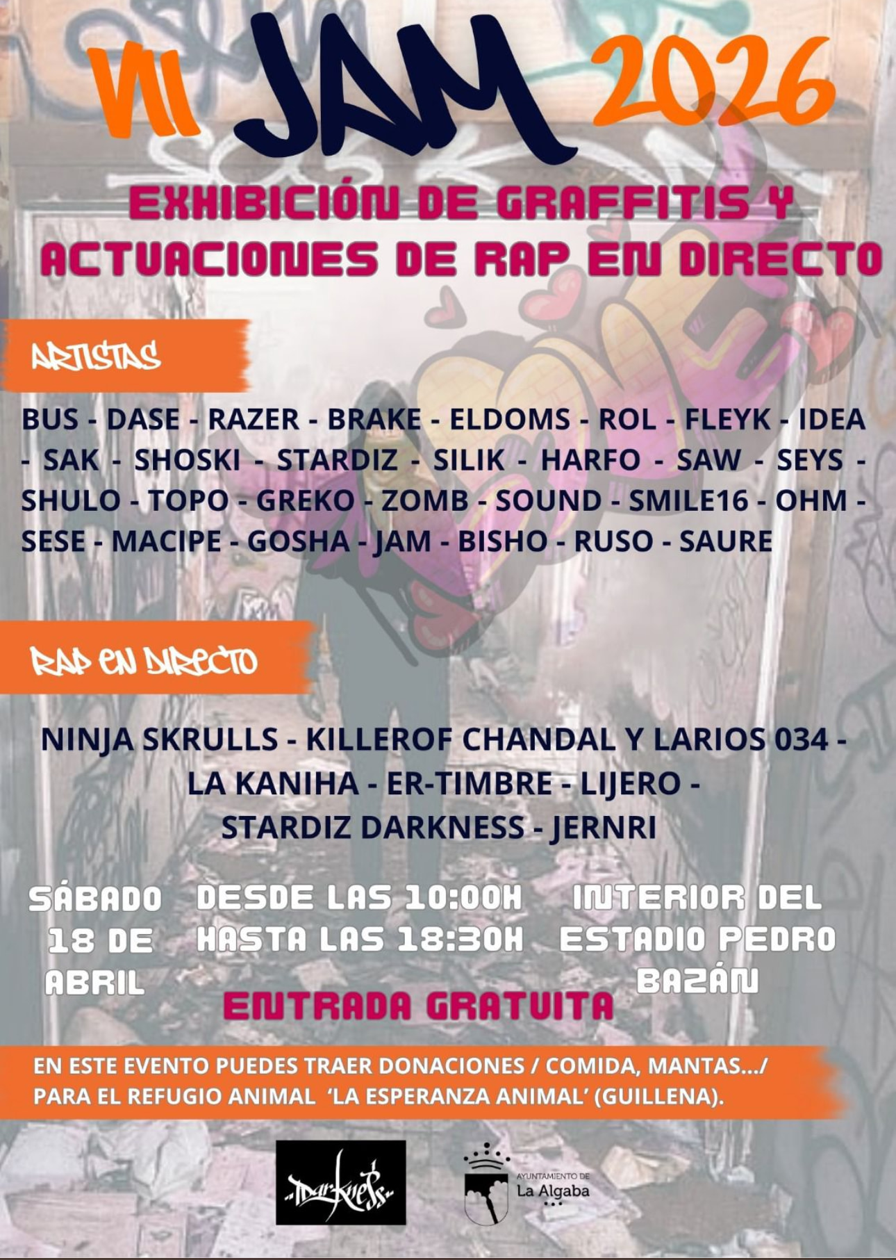 Bda. Dolores Ibárruri, 47, 41980 La Algaba, Sevilla (Spain) @New_User https://www.laalgaba.es/es/temas/juventud/agenda-tema/-Llega-el-VII-JAM-2026-Exhibicion-de-GRAFFITIS-y-actuaciones-de-RAP-en-DIRECTO/
